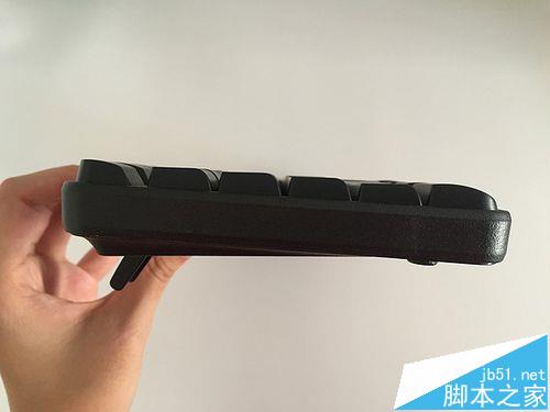 7、從側面看會明顯地看到按鍵下方弧度自然,鍵盤呈現梯形狀,上邊厚下邊薄,,擱置在桌面上打字時更加友好: