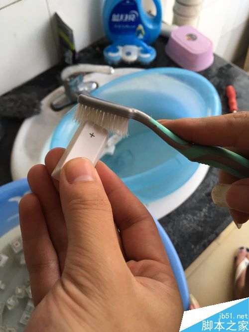 3、清洗按鍵,這里就可以使用刷子刷了,要一個一個的刷哦!這個工作要特別細心。我是用牙膏刷的,用別的清潔劑也可以。