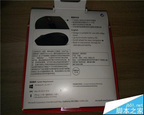 2、打開外包裝盒,一股類似麥當勞快餐盒的既視感,不知道是微軟公司的有意為之還是巧合“撞衫”。該款鼠標的配件包括產品指南、質保書以及一節5號電池。