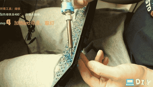 所需工具:烙鐵。加熱烙鐵至480度,將錫點(diǎn)融掉,然后取下LED燈,如圖。