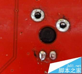 4、把吸錫器彈簧壓下,用烙鐵把軸的腳燙熔,然后用吸槍吸出腳里的錫,要確保pin腳不要與板子相連;另一只相同方法;