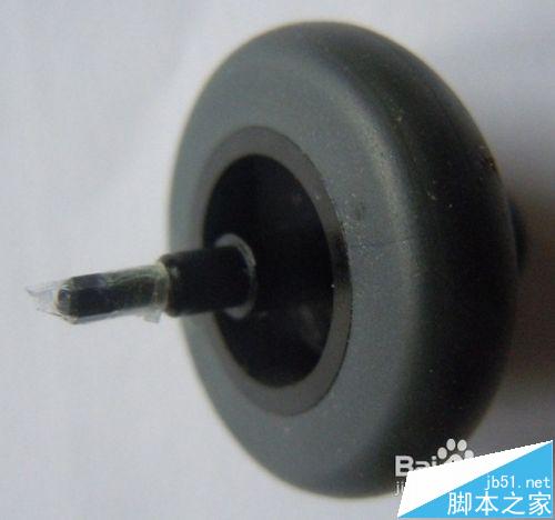 3、將滾輪從電板上取下來。在滾輪的細長軸部位,粘上一點點透明膠帶,多少根據磨損情況自己掌控。