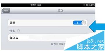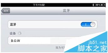 3、打開IPAD平板的藍牙,在IPAD上發(fā)現(xiàn)藍牙單擊“BOW”,就會彈出配對PIN碼提示。