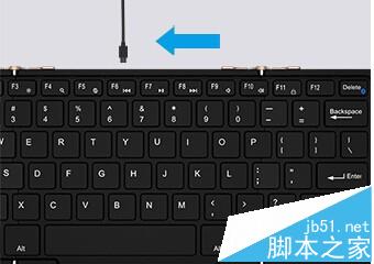 5、最后跟大家介紹有線連接,先翻開鍵盤,插入電源線和電腦USB接口連接。