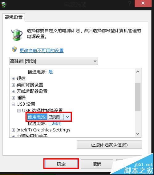 5、把使用電池 已啟用 改成禁用 連通電源也改成禁用