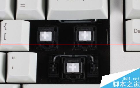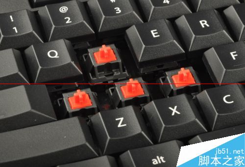 4、然后是紅軸,紅軸較黑軸力度輕,同樣是直上直下的爽快風格,開關是個直線狀的,自頂部到底部的開關,但只要一點點驅動力就可以觸到開關的底部, 所以用起來會比較滑,導致個別用戶容易誤觸,但不少玩家給予好評,如果搭配得當使用者可感受到絲綢般順滑,可以說MX紅軸鍵盤同時適用于打字和游戲兩方面。