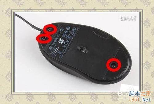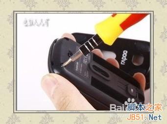 4、機(jī)械鼠標(biāo),拔除USB插頭。無線光電鼠標(biāo),摳出干電池。反過來,拆卸固定螺絲。