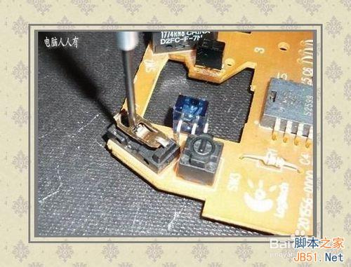 12、當(dāng)然,如果微動(dòng)開關(guān)內(nèi)部毀損,只有更換微動(dòng)開關(guān)了。如果不常用中輪的點(diǎn)擊動(dòng)作,完全可以將中輪微動(dòng)開關(guān)換掉左右鍵毀損的微動(dòng)開關(guān),這個(gè)操作需要使用電烙鐵等工具了。