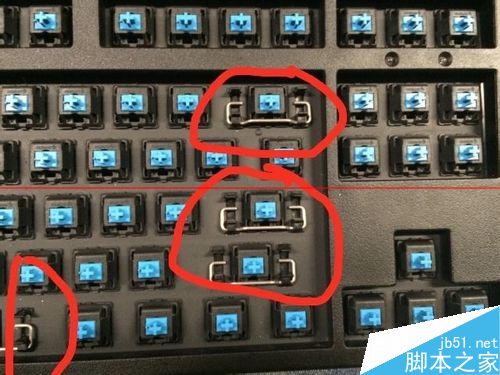 3、拆除和安裝鍵帽時回車鍵和空格鍵以及其他較大的鍵帽可能會有固定軸,要小心別弄壞。