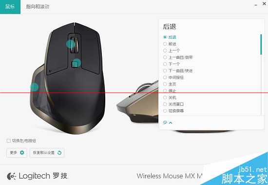 關于拇指滾輪,又不得不提大革命了,但不管是位置上還是滾動方式上兩者之間都有所不同,大革命偏前偏下一點,而羅技 MX MASTER 則偏上和靠后,與兩個側鍵排列在一起;滾動方式大革命為前后滾動,羅技 MX MASTER則是上下滾動,從滾動方向的邏輯理解來說,剛開始使用羅技 MX MASTER 的拇指滾輪會覺得有點不適應(有點左右不分的感覺,可能是以前大革命用多了吧),不過當使用思維固定下來之后,確實覺得還是羅技MX MASTER 的拇指滾輪更形象更舒適一些,同樣這個滾輪功能也是可以自定義的,包括網頁滾動瀏覽、音量調節、切換網頁標簽、亮度調整等等。