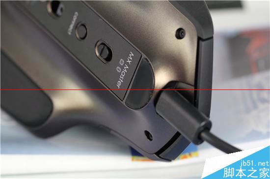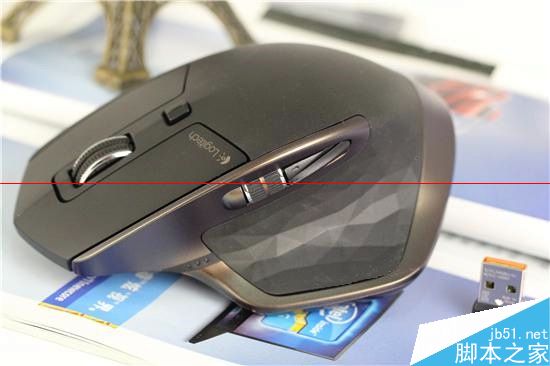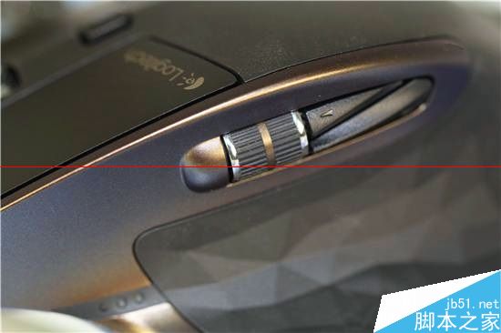前邊也提到羅技 MX Master 讓小編想起了 MX大革命,從外形上兩者確實有共同點,但是我們也不難發現,羅技 MX Master 相比大革命少了幾分圓潤,多了一些彰顯現代化的棱角設計,線條剛柔并進看起來要更酷一些;而相比羅技G502 這種游戲鼠標又更顯成熟穩重一些。羅技MX Master 的兩個按鍵、包邊,以及中間隆起部分使用的材質都有所不同,虎口與拇指處被設計變成了多棱面(類似寶石切割),這是小編比較欣賞的地方。此外,在羅技 MX Master 身上我們找不到任何的鋼琴烤漆工藝,更多的還是注塑與磨砂加工,配色上羅技 MX Master 還是以黑色為主,然后包邊部分采用磨砂暗金來進行搭配,觸摸起來質感有保證,防滑效果也不錯。