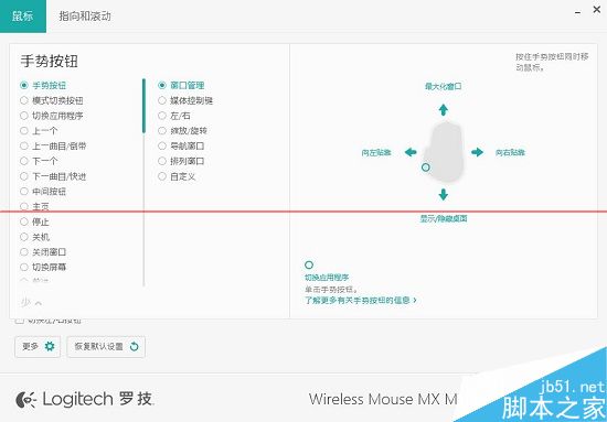 剩下的就是隱藏在拇指位置的手勢按鍵了,按鍵位置與 M950t 是一樣的,默認單點為窗口管理,當然你可以在 Logitech Options 中設置各種手勢操作,比如快捷打開我的文檔、我的音樂、文件夾,或者按下手勢按鍵外加向左或向右滑動可以前進/后退,上下滑動可以讓窗口最大化/最小化等等,要說這里有什么瑕疵,筆者認為手勢按鍵還可以做的稍微松軟一些。