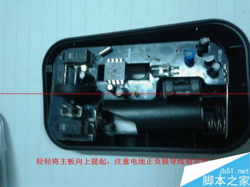 2、可是開(kāi)關(guān)好像還是不太靈光,輕輕將主板向上均勻提起,用力要均勻哦,不然電池兩極導(dǎo)線會(huì)斷的,這是經(jīng)驗(yàn):)