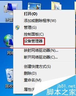 1、鼠標右鍵單擊計算機圖標,在彈出的菜單中選擇“設備管理器”,如下圖所示: