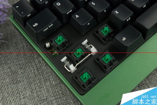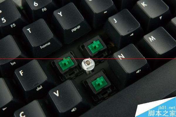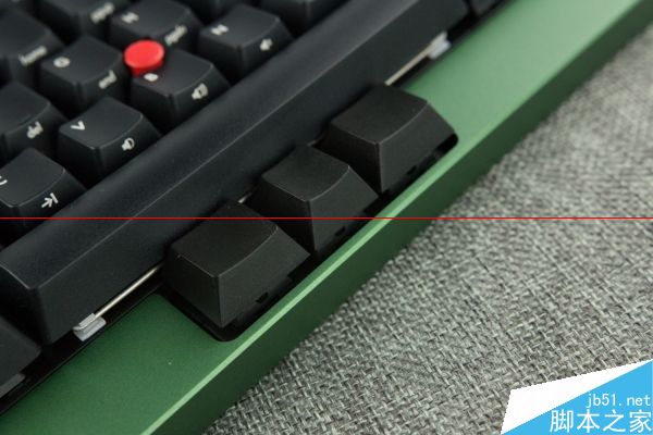 小紅點搖桿是從G、H、B三個按鍵中突出,所以相應的鍵帽都需要經過特別的處理后才能進行安裝使用。由于這樣的設計,使得替換鍵帽要么就狠心進行同樣的處理,不然都不可能完美替換了呢。