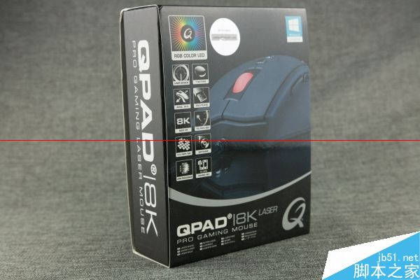 QPAD 8K Laser與自家產品最大的更新與區別,其實就在于外包裝設計上。QPAD 8K Laser在包裝設計更像是現代的產品,更為緊湊和具保護性,也就更漂亮的了些。包裝上依然是各種特性賣點介紹,挑幾個重點的說,分別是使用了ARM控制單元、7個按鍵、最高可達到8200CPI。當然更為關鍵的是,QPAD 8K Laser新加入了目前相當熱門的RGB燈光效果支持。