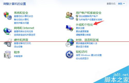 2、進入控制面板選項界面,在下方列表中找到【外觀和個性化】選項,點擊打開。