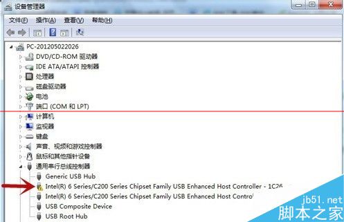 6、進(jìn)入設(shè)備管理器,找到鼠標(biāo)和其他指針設(shè)備以及通用串行總線控制器,點(diǎn)擊旁邊的箭頭,查看是否有出現(xiàn)黃色感嘆號(hào)的標(biāo)志 ,如果有就將其更新