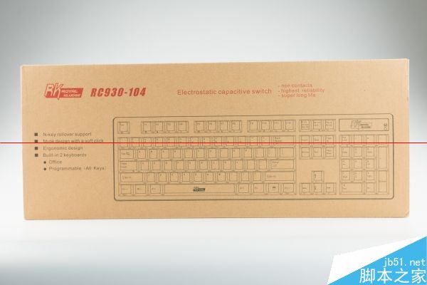 在包裝設(shè)計上,Royal Kludge RC930依然是表明了自己的一些特定賣點,并有靜電容技術(shù)的賣點。靜電容技術(shù)的特點是無物理觸點能夠保持超長使用壽命、極高可靠性以及順滑的按擊感覺。而Royal Kludge RC930的特性賣點則是全鍵無沖、人體力學(xué)設(shè)計以及多媒體鍵等。