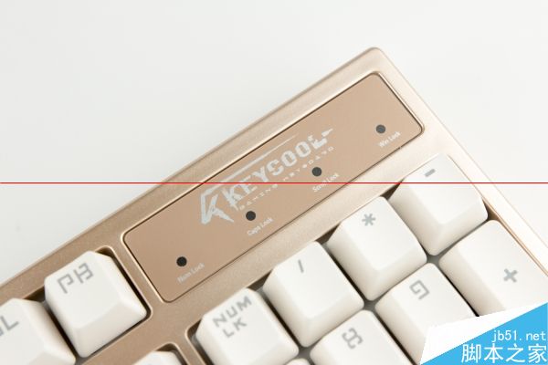 凱酷Hero RGB是一把標準的104鍵鍵位設計,當然就從外形設計上來說,其實也是凱酷此前的模具設計,并沒有多少能說的地方。這回的凱酷Hero RGB似乎均為香檳金外殼,這個顏色在實際效果上是表現的不錯的,當然在噴漆工藝上還有進步的余地,但在這個價位上已經足夠了。