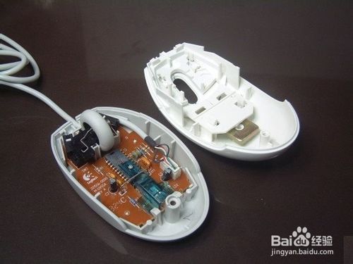 1、用螺絲刀將鼠標外殼上的螺絲拆下,插下外殼,露出內部的電路板,注意不要把鼠標的連接線弄斷了,除非你有電焊工具,否則還是小心為好