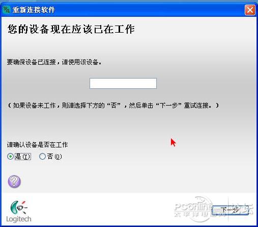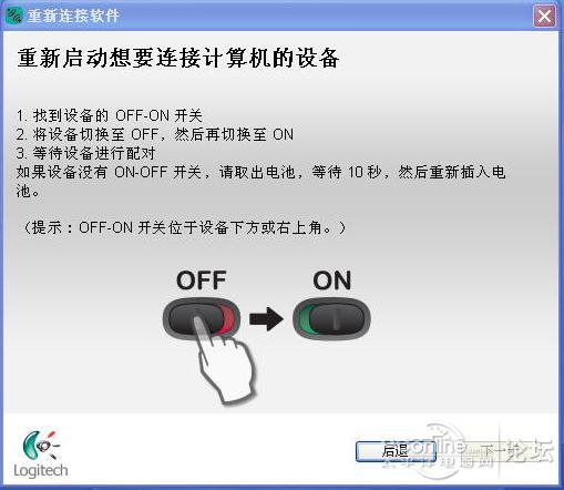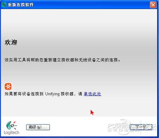 雙擊重新連接程序,點擊下一步,這時需將將羅技M215開關打開,軟件有提示: