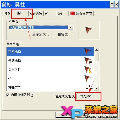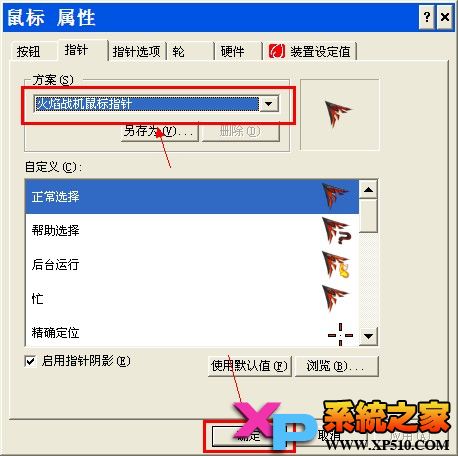 在安裝復(fù)制完成后,會(huì)自動(dòng)打開“鼠標(biāo) 屬性”窗口,并顯示“指針”選擇項(xiàng)卡,請(qǐng)保證在“方案”下拉菜單中剛剛安裝的鼠標(biāo)指針方案被選中,然后按“確定”按鈕即可。