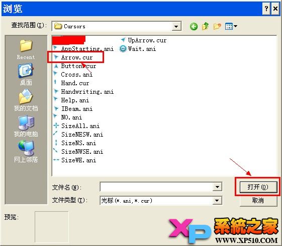 在“瀏覽”窗口,選中對(duì)應(yīng)的鼠標(biāo)狀態(tài),然后按“打開”按鈕。