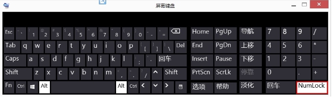 4. 點擊屏幕鍵盤的“numlock”來開啟或關閉屏幕數字鍵盤: