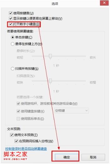 3. 將“打開小數字鍵盤”打鉤選中,并點擊“確定”,如下圖: