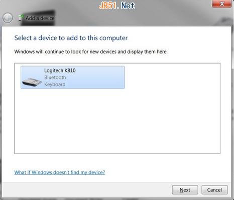從設備列表中選擇 Logitech K810,然后單擊下一步。