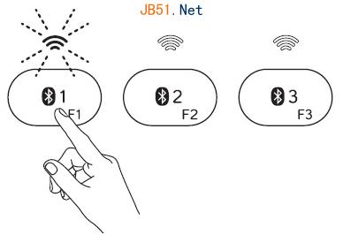 鍵盤正面的藍牙按鍵指示燈將閃爍藍燈。