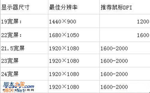 看到這里,或許不少朋友會有這樣的疑問,那就是不同分辨率的大尺寸液晶分別需要多大分辨率的鼠標才合適呢?