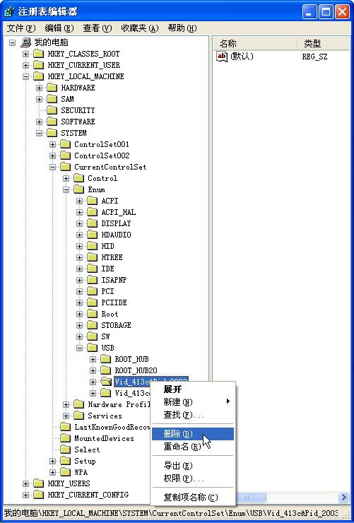 刪除此目錄下所有以Vid打頭的鍵值HKEY_LOCAL_MACHINE/SYSTEM/CurrentControlSet/Enum/USB/,每個都刪除(在刪除每個鍵值時,先將每個鍵值的權限改成完全控制,就可以刪除該鍵值了)