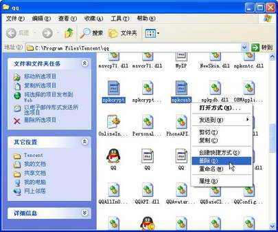 npkcrypt與npkcusb,其位置在QQ默認文件夾c:/program files/tencent/QQ中(路徑依個人安裝位置而定)