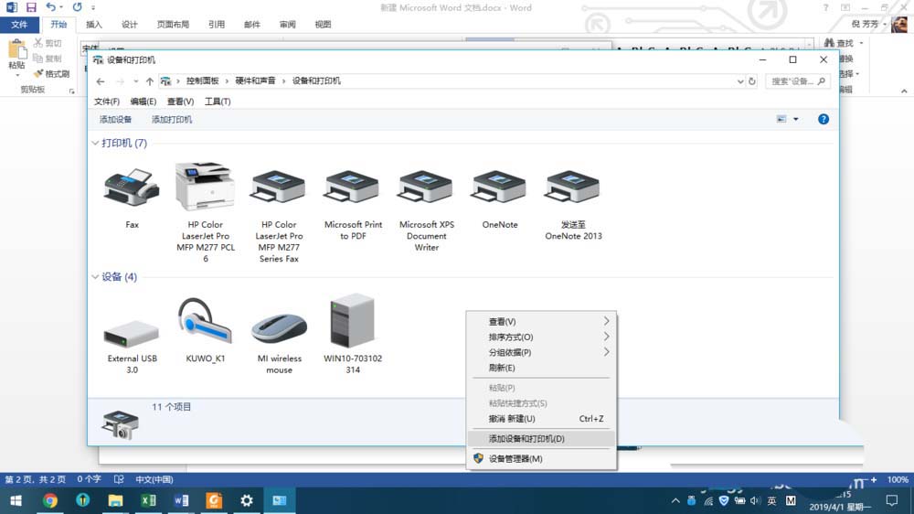 3、出現(xiàn)如下界面后右鍵選擇“添加設(shè)備和打印機“