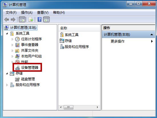 3、然后打開計算機管理界面后點擊其中的【設備管理器】功能。