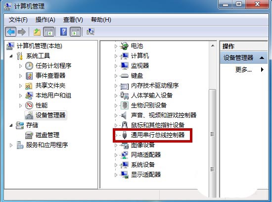 4、接著在設備管理器里點擊【通用串行總線控制器】。