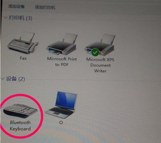 2、藍牙鍵盤匹配成功后,進入“控制面板”——“硬件和聲音”——“設備和打印機”界面。