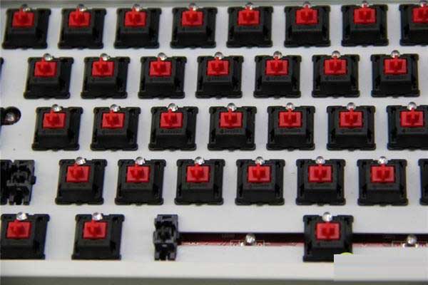 在白底鍵盤的拆卸中,我們可以看到白底鍵盤的灰塵較少,并且主要分布在軸體附近。