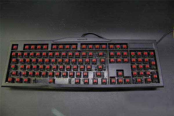 黑底鍵盤鍵帽周邊和鍵盤上部布滿污漬