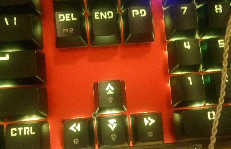 4、在方向鍵處按住FN之后選擇方向鍵上下,可以分別調節鍵盤背光燈的亮度,向上是亮,下是暗。