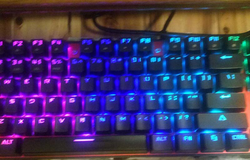 1、機械鍵盤的品牌很多,這里需要你的機械鍵盤有背光燈,并且有跑馬燈,一般在機械鍵盤插上USB插口后,鍵盤燈會亮起。