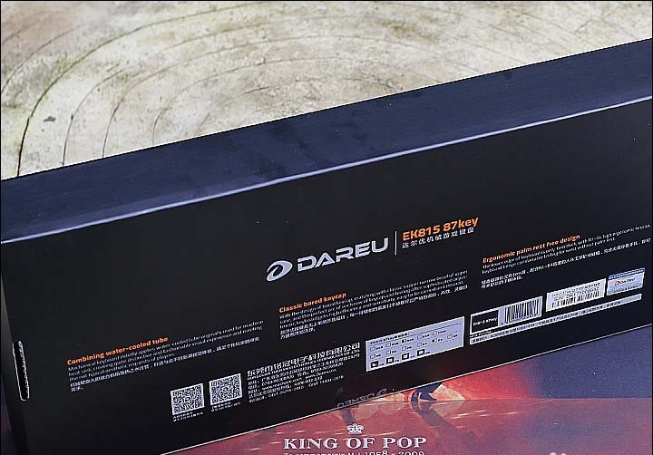 1、達爾優EK815 87鍵鍵盤的包裝設計采用了純黑色的搭配,帶有金黃色的D標示,包裝背面帶有產品相關訊息,看起來簡潔鮮明。