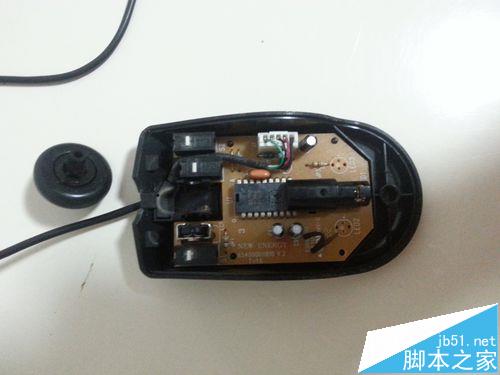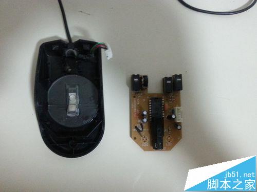 3、拆除鼠標右邊的白色usb=連接線,便可以將鼠標的主板拿下,需要小心一下鼠標滾輪的拆卸