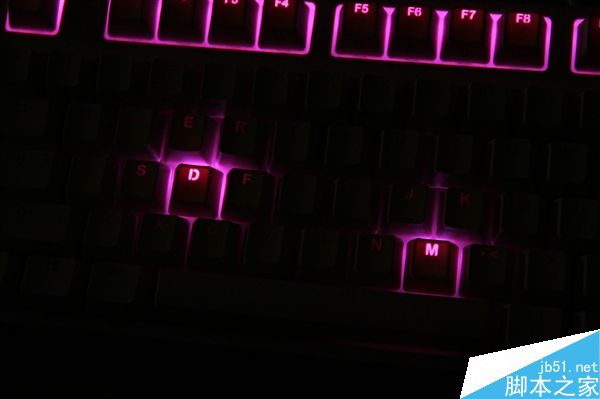 Fn+F5位全域不點亮模式燈效的循環調節,包括單色單點亮、隨機單點亮、單色漣漪、隨機漣漪、單色激光、隨機激光,同時按下相應鍵位才點亮。