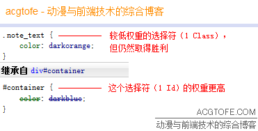 而且,繼承樣式是最低優先級這一點,是無視繼承樣式所在的樣式規則的內容的。這就是說,繼承樣式所在的樣式規則,即使其選擇符的權重比元素本身樣式的選擇符的權重更高(本文后文會介紹選擇符權重~ :) ),甚至繼承樣式被寫了!important,繼承樣式會被元素本身樣式覆蓋這一點仍然成立。
