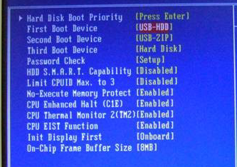 Advanced BIOS Features(BIOS進階功能設定),通過鍵盤的“上下左右鍵”調節位置選中進入, Hard Disk Boot Priority(硬盤引導順序):這個是最關鍵的了,一般你之前插入了USB設備后, 這里進去就會顯示USB的磁盤信息,然后通過鍵盤上的“+”(可以調節到最上面,也就是優先啟動)