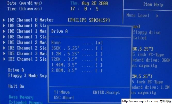 如今的電腦基本都不用軟驅了,但是主板在設計時候還是支持軟驅,這樣在Windows系統上總是多一個軟驅盤,實際上根本用不著,所以就可以直接在BIOS里頭關掉,首先選擇Standard Bios features,然后有個DRIVEA選項,移動到該項上回車,選擇NONE或DISABLE即可關掉。