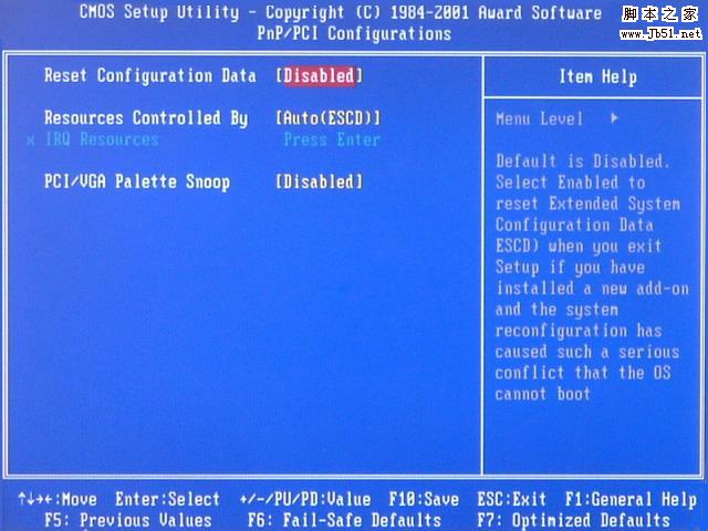 “PNP/PCI Configurations”項子菜單中共有4子項∶